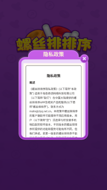 随时拿起手机就能玩拧螺丝排序的游戏,惊喜福利多到超出你的想象!相同颜色的螺丝需要你拧开并点击排序,轻松闯关乐趣满满!关卡越往后难度越大,对应的惊喜奖励也会更丰厚哦!