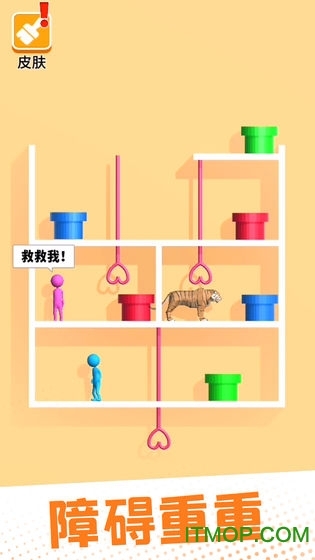 《爱的魔力别针》是一款轻松益智的闯关休闲游戏。玩家的唯一目标是拯救被困的情侣——每一关里,这对情侣都会被关在小白屋内,而隔壁房间就潜伏着凶猛的野兽。他们能否安全相聚,全看你的操作!