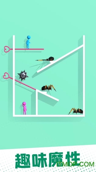 这是一款能够让人轻松解压的益智游戏,玩家在游戏里的任务是帮助男女主角重逢。在他们重逢的道路上设置了各式各样的机关,玩家得开动脑筋去解决这些难题,要是不小心操作出错,就有可能导致主角受伤的悲剧发生。