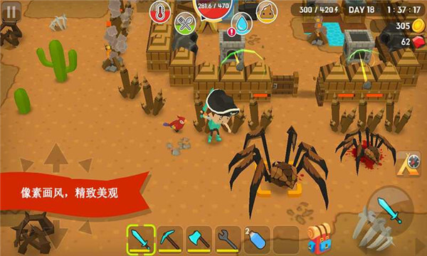 2.玩家能够收集各式各样的蓝图,以此建造更多更高级的建筑与设施,从而更有效地抵御僵尸的入侵。方块家园游戏亮点方块家园游戏亮点