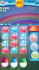 1、游戏里的每一个关卡都配备了红、蓝、绿三色的大炮与水滴精灵,水滴精灵以三行四列的形式从上到下依次排列。