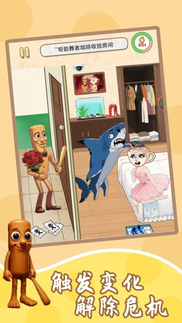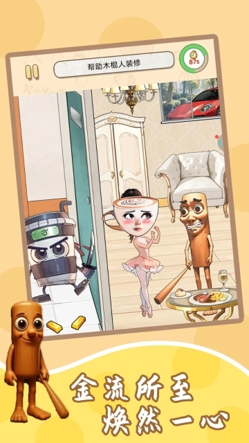 1、进入各个关卡,完成每一关的任务,例如协助木棍人一家实现致富目标,过程中可以运用金钱和各类道具。