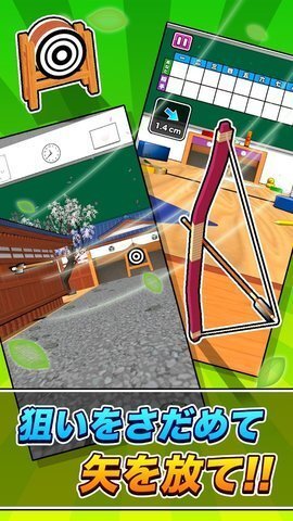 游戏采用日式游戏常见的清新画风,3D呈现效果相当出色,同时还提供了种类丰富的弓供玩家挑选。