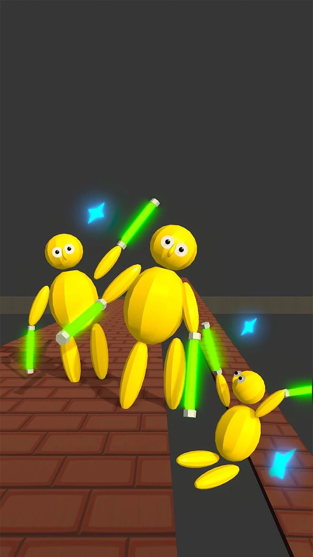 1、用虚拟摇杆来操控火柴人忍者的移动,滑动屏幕可以调整投掷手里剑的角度与力度,以此攻击对手。