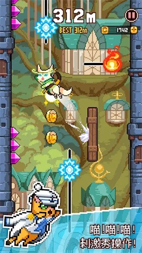 3. 操作指南:点击屏幕左右两边可控制猫咪向左或向右移动,点击屏幕中间区域或者向上滑动屏幕能让猫咪跳跃。在部分关卡里,还需要借助猫咪的特殊能力(像二段跳、滑翔之类)来突破障碍。