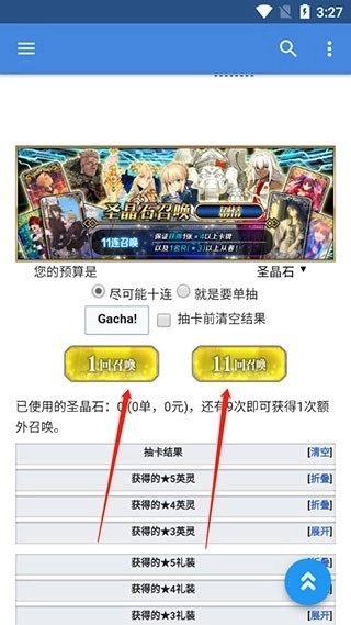 4、抽卡结束后,下方会呈现抽卡结果,与此同时,上方还会模拟出真实的抽卡幸运值。