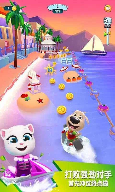 汤姆猫摩托艇2是以汤姆猫为核心主题的游戏,为玩家带来了惊险刺激的水上赛艇竞速体验。在游戏里,玩家需要通过滑动操作,操控赛艇在波澜起伏的水面上飞速行驶,在此过程中,不仅要灵活收集四处散落的金币,还要巧妙避开各种障碍物,并且完成一系列具有挑战性的任务。这款游戏有着趣味十足的玩法和卡通风格的画面,感兴趣的朋友不妨来试一试。
