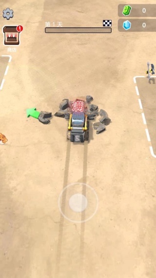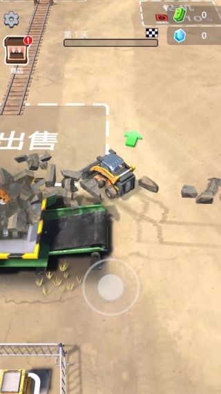 1、进入游戏后,从第一天起,操控挖掘机在表层矿场进行石头挖掘作业。