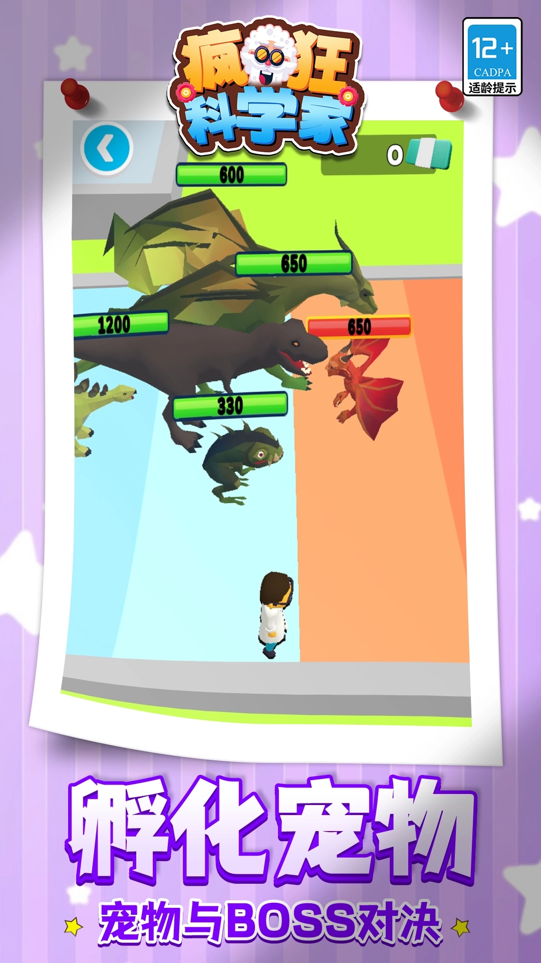 《疯狂科学家》是一款玩法别出心裁的休闲游戏。在游戏里,你将化身科学家,精心培育专属宠物。通过战斗能提升它们的等级,在探索途中还能捕捉形形色色的宠物。每只宠物都拥有独特技能,合理运用这些技能,就能助力你赢得每场挑战。