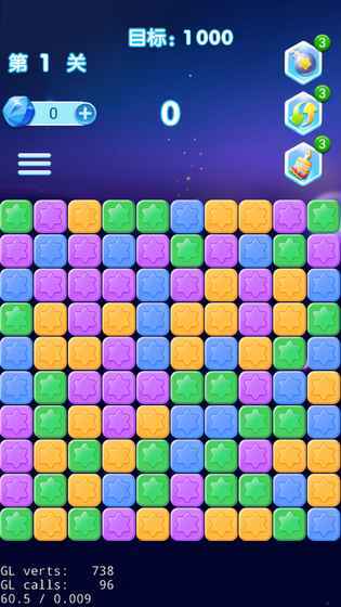 1、经典模式:消除屏幕上的星星以获取对应分数,不断突破个人最高分记录;