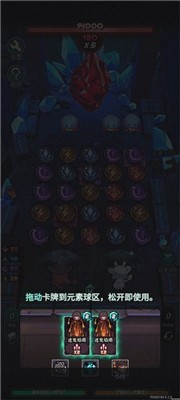 2.这款游戏把卡牌策略和三消玩法结合在了一起,玩家得把卡牌拖到元素球所在的区域,松开手就能触发技能效果。