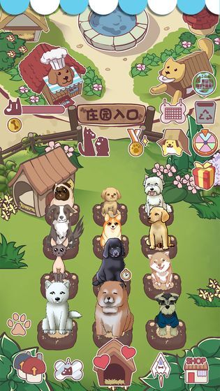 3、游戏玩法简单又欢乐,玩家可以通过放置并合成不同种类的狗狗,来收集到更多可爱的狗狗。