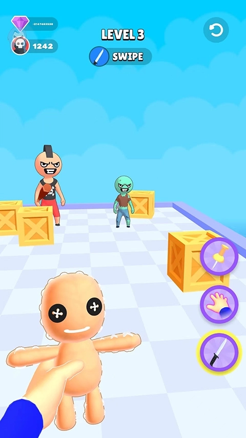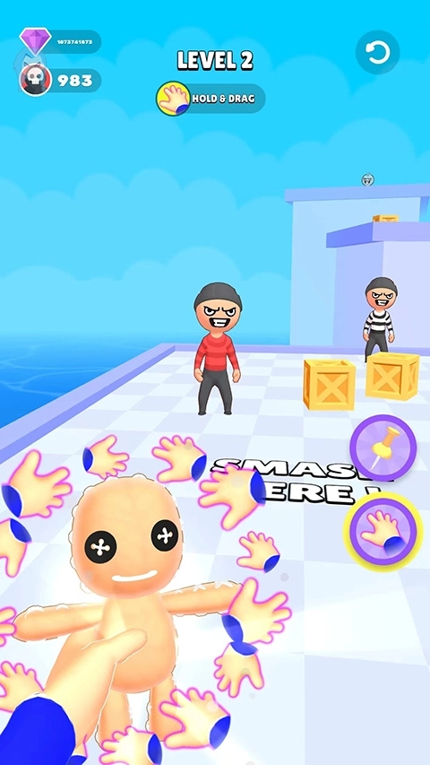 5、进入下一关后,你会发现我们解锁了新技能——可以通过滑动屏幕用手拖动敌人。