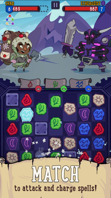 当你在平行或垂直方向上把三个及以上的符文连接起来,就能触发连接符文的攻击效果,这样在回合结束时武器的攻击力就会得到提升。