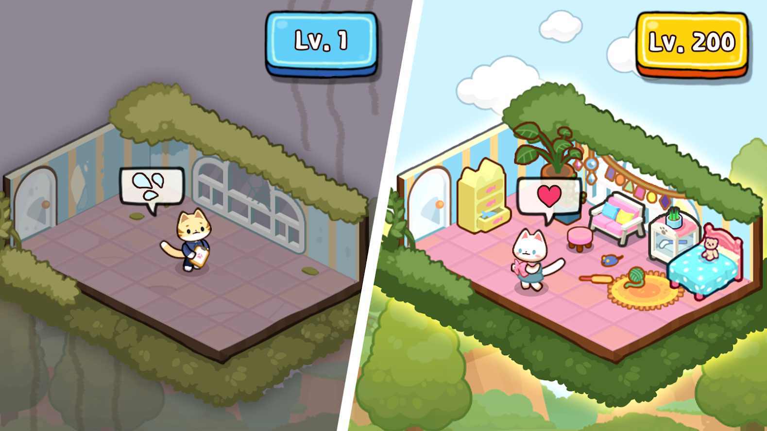 游戏的故事发生在一座热闹繁华的都市里,玩家将化身一位年轻的猫界大亨,掌管着一家已经有了初步规模的猫咪收容所。这款游戏的核心目标是让玩家持续经营和发展收容所,吸引更多不同种类的猫咪前来居住,一步步扩大收容所的规模,从而增加收入来源。与此同时,玩家还需要时刻留意每只猫咪的健康状况,确保它们都能生活得快乐幸福。