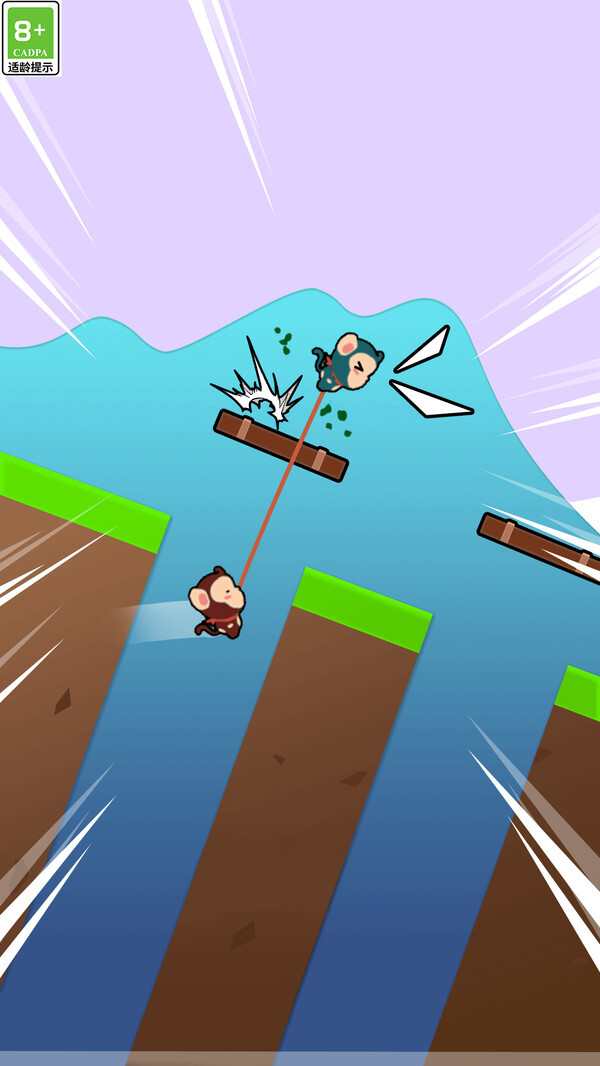 2、弹性协作就像一方攥住藤蔓,另一方能够借助弹力跃过悬崖,这很考验双方的即时沟通能力。