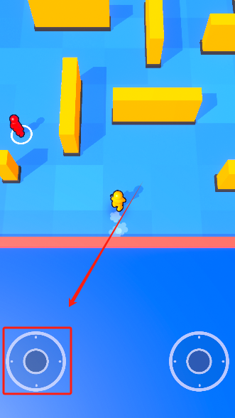 1、启动游戏并进入场景后,借助左下角的摇杆来操控角色移动