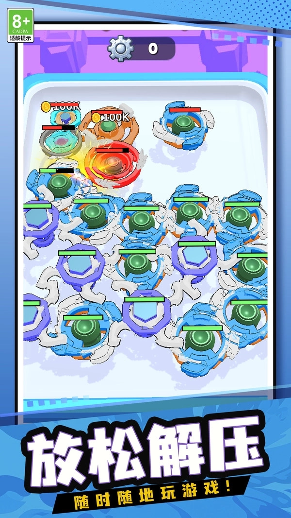 1、挑战陀螺的极限旋转速度,解锁隐藏成就,轻松消灭你的敌人们。