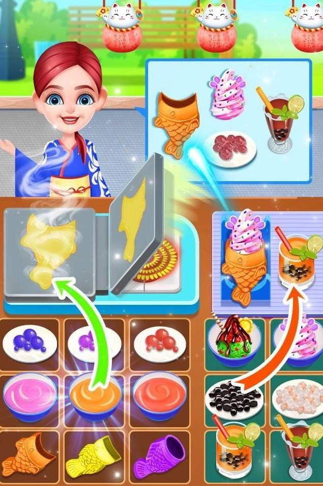 美味的鲷鱼烧商店安卓版:开家小小的鲷鱼烧店,从调面糊开始,红豆馅,奶油馅和巧克力馅都可以随便加的,倒进模具里烤得金黄酥脆,出炉后还能撒糖珠和放颗草莓装饰,而且周末搞促销活动能吸引排长队,但手速要快不然容易烤焦,攒够钱可以升级烤炉,一次能出六个鲷鱼烧,后期还能加卖冰沙和奶茶,变成街角最火的甜品铺子。