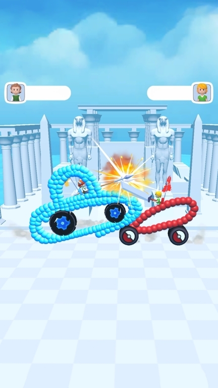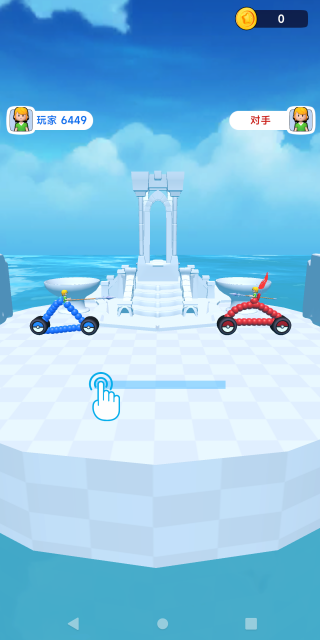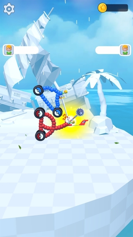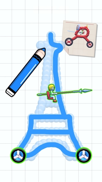 1. 就像下图展示的那样,玩家进入关卡后得先设计战车的外形,具体操作是用手指画出线条,把车轮和角色连接起来。