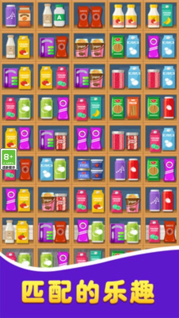 1、游戏的核心玩法是移动货架上的商品,将三个相同的物品排列在一起进行消除,简单易上手又有趣。