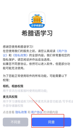 1、点击同意按钮即可顺利进入应用界面,这样您就能访问所有学习功能和资源了。