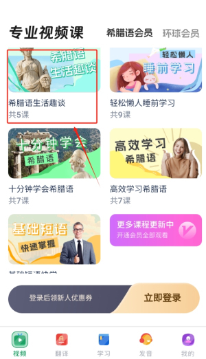 1、课程内容从基础到高级覆盖全面且丰富,用户能依据自身水平灵活挑选,助力系统掌握希腊语知识,从而让学习更具成效。