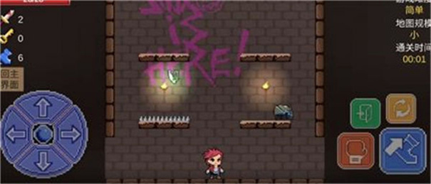 2、通过左侧的控制键来操控角色移动,右侧的按键则分别对应攻击、跳跃、互动以及道具使用功能。