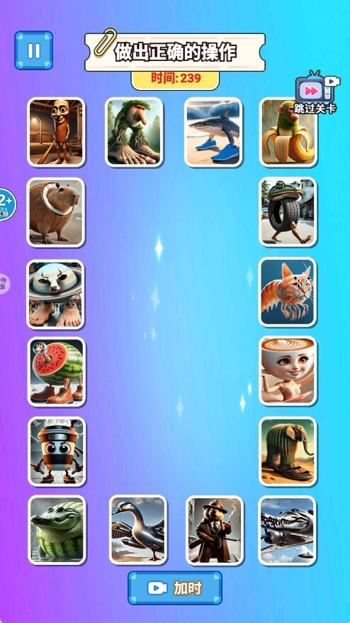 3、视觉上运用渐进式模糊轮廓的设计手法,需配合音频信息进行联想与推理,以解锁动物和物品之间独特的合成逻辑与组合规律。