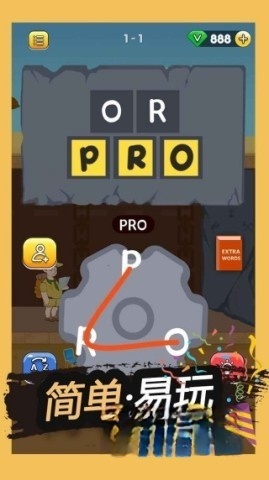 2、游戏的每个关卡都配备了全新的单词,玩家需要按照顺序把字母连接起来,拼出正确的词语,以此增加游戏的趣味性。