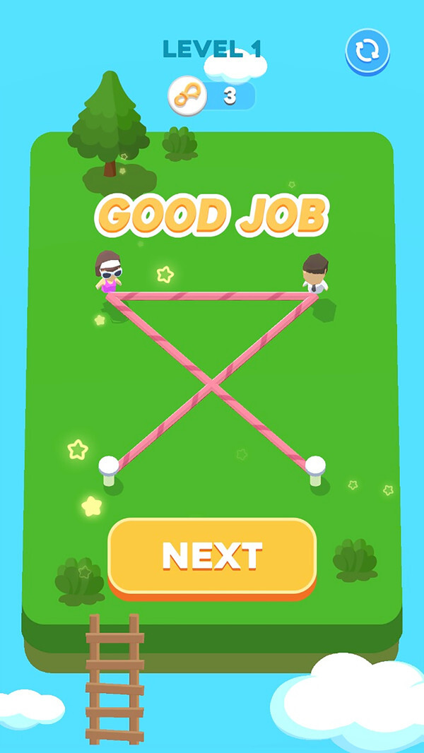 1.这款游戏的玩法十分有趣,你能够尝试多种多样的操作方式,通过各种办法把橡皮筋连接起来,从而成功闯过关卡。