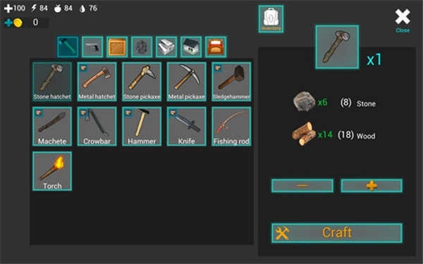 天色渐渐暗了下来,我们得生个火堆才行。你需要点击屏幕左侧背包下方的“齿轮”图标,这样就能打开合成界面。在这个界面里,你能看到各类工具的合成配方以及所需的材料清单。