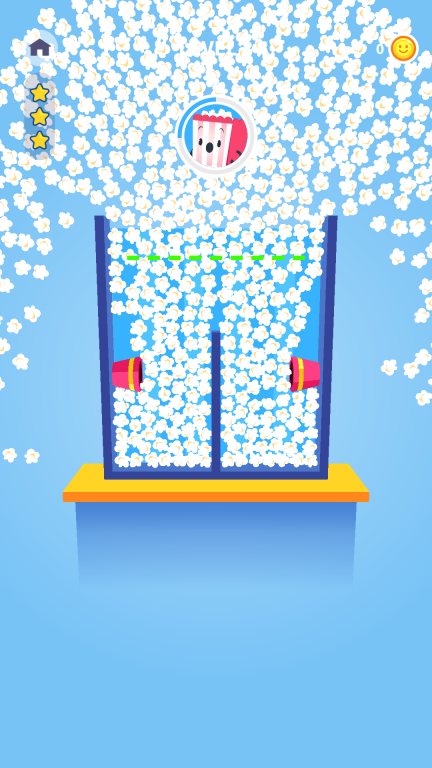 2、进入第二关后,机器内部设有绿色分段线。长按填充爆米花时,需留意各个分段区域,使爆米花均匀堆积并逐步填满;同时要控制长按的时长,防止爆米花超出机器的容纳范围。