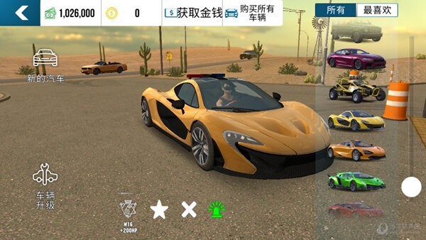 1、从里面挑选你的车辆,还能收集金币来购置新车。
