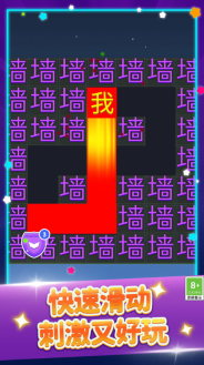 1、进入游戏后,玩家会先出现在起点位置,需要滑动屏幕来操控“我”字角色移动,初步观察由汉字墙体组成的迷宫结构,并尝试往不同方向探索。