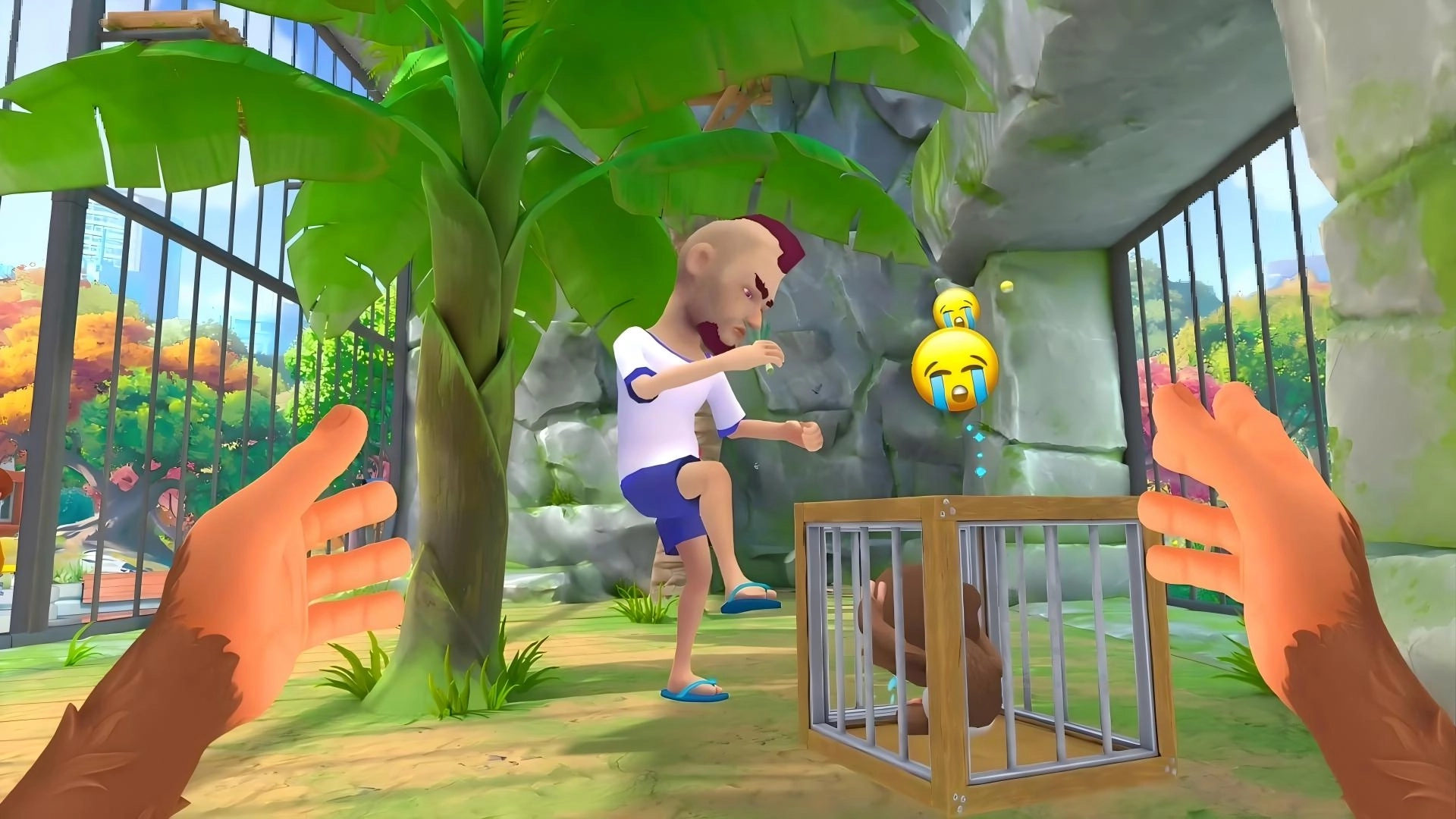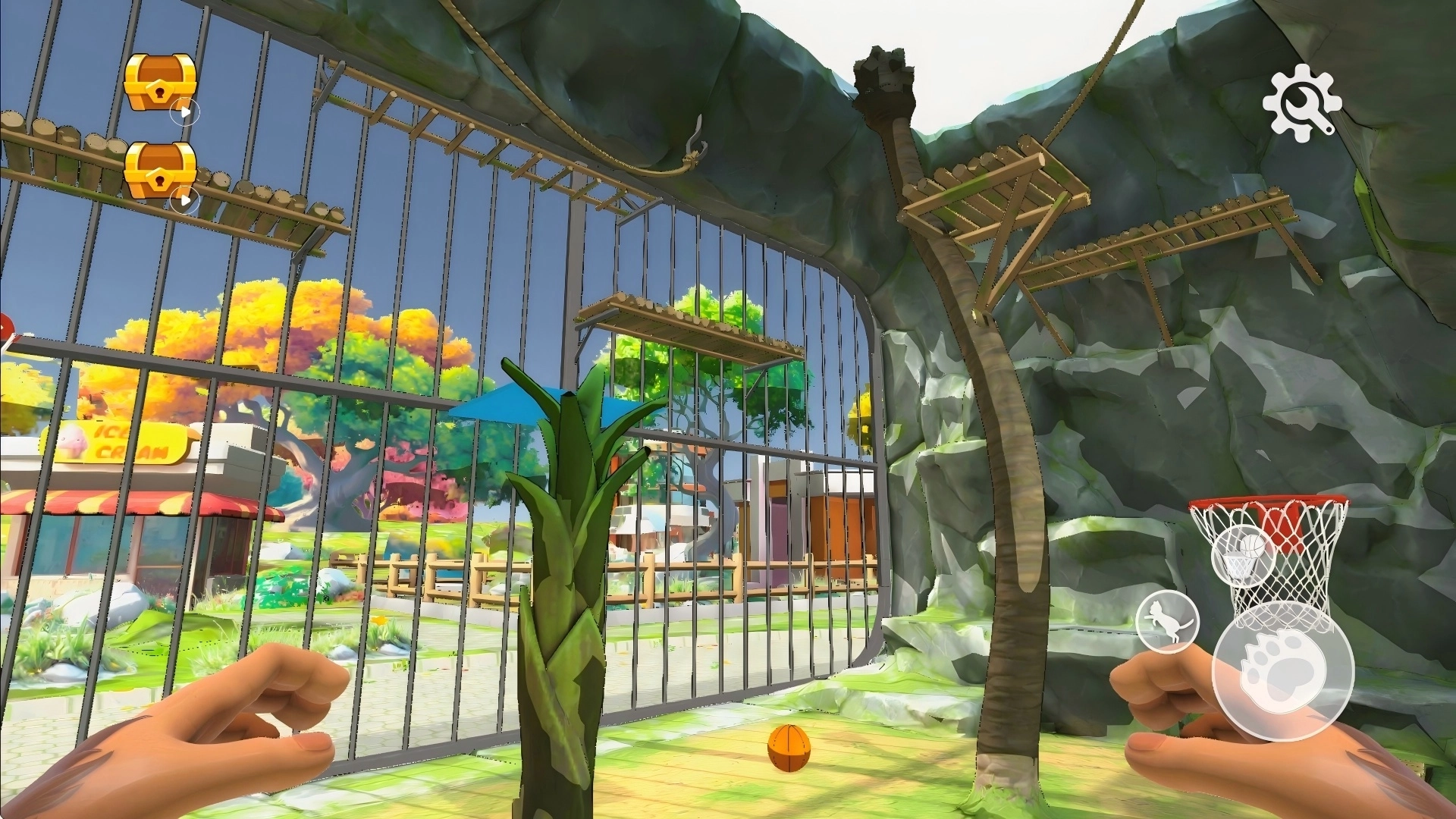 我是猴子VR游戏是一款模拟猴子的趣味游戏,在动物园中,你将扮演一只猴,以它的视角,进行互动,喂养以及成长的过程,带入感很强烈,还可以在自己的小窝,翻滚,跳跃,发呆玩等操作,还有投篮奔跑这些趣味挑战,丰富的玩法让人很解压。