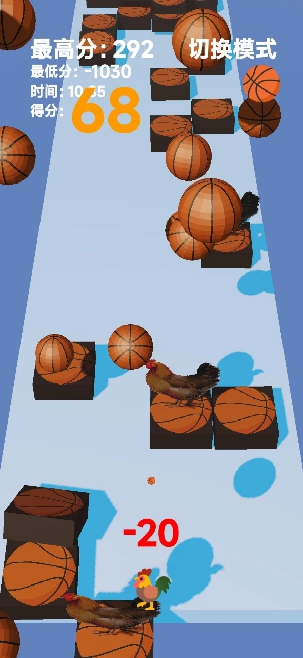 踩鸡篮球游戏是一款趣味休闲类的。这款非常的有趣,玩家将操作大公鸡在篮球上进行跳跃比赛,没踩到一个篮球将会获得相应的分数,只有获得足够的分数才能完成比赛并获得非常厉害的称号。关卡中还有各种不同的小任务,玩家可以完成,并获得神秘的大礼。