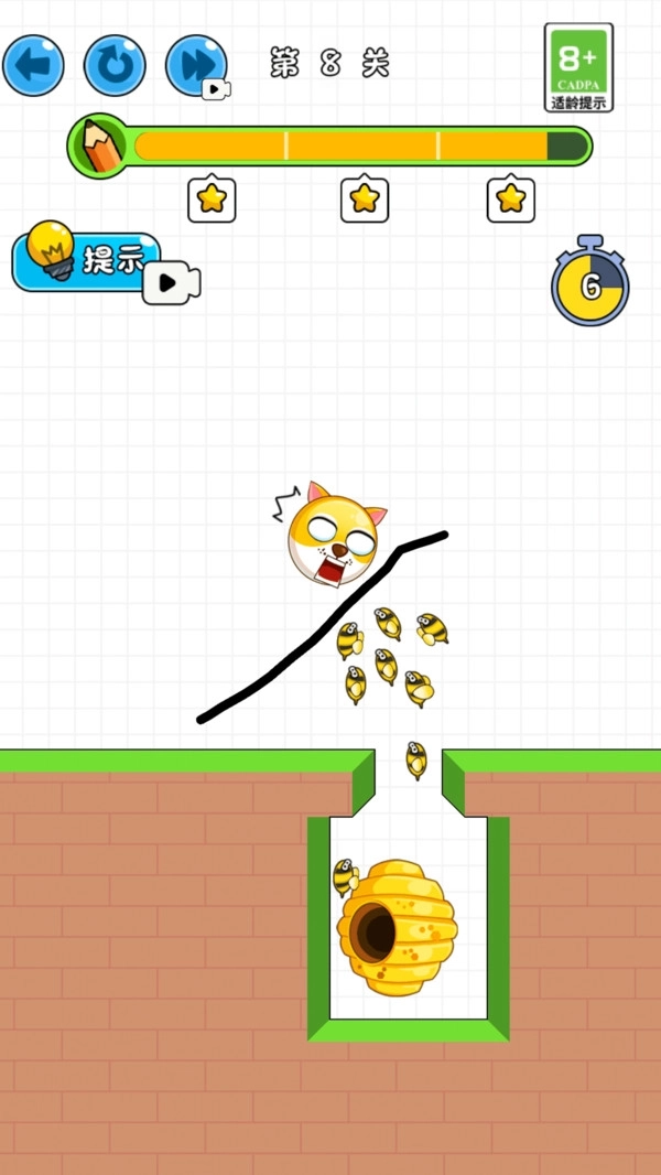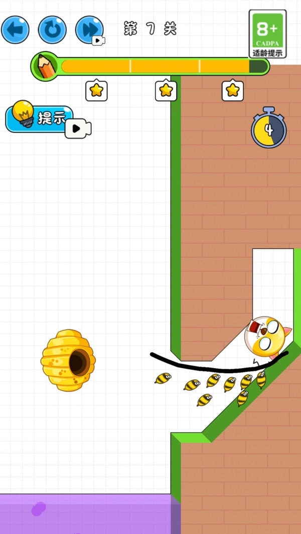 3、绘画时必须一笔连贯完成,要是中途松开手指,蜜蜂就会发起攻击。
