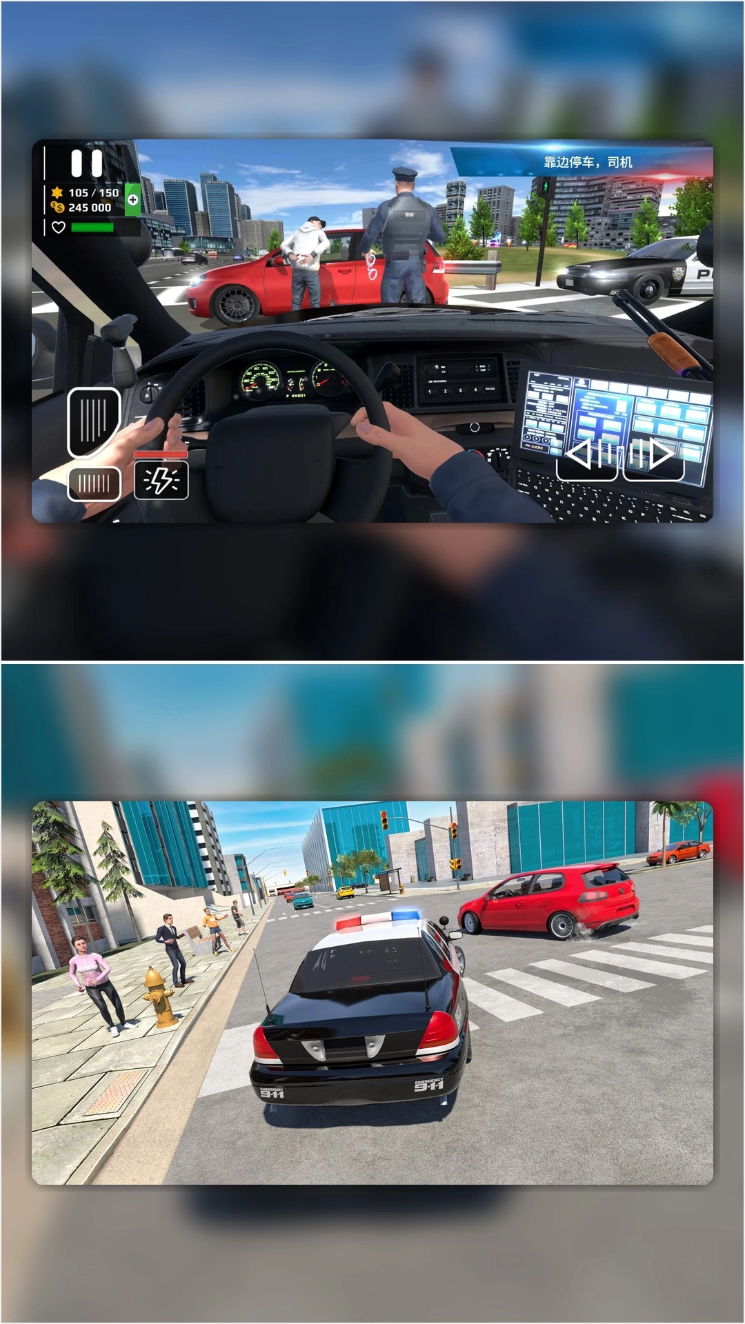 1、玩家将扮演城市治安官在开放街区巡逻检查,随时处理突发事件。