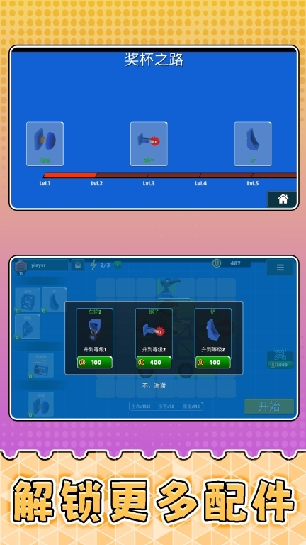 通过战胜AI对手来解锁新的部件,一步步增强战车的性能,以此来应对难度不断提升的关卡设计。