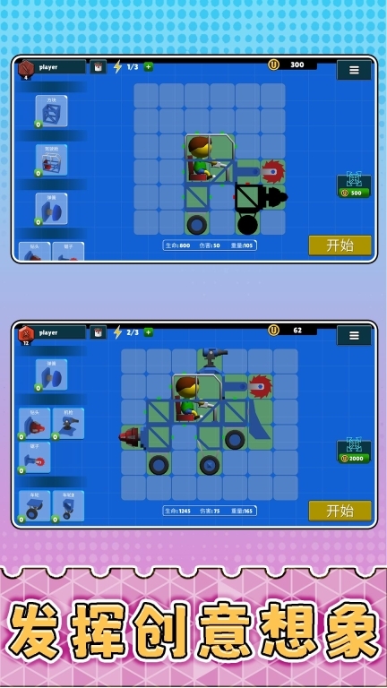 可以自由搭配各类积木组件,打造专属于你的独特战车,无论是侧重稳固防守还是追求迅猛突袭,都由你的创意来主导方向。