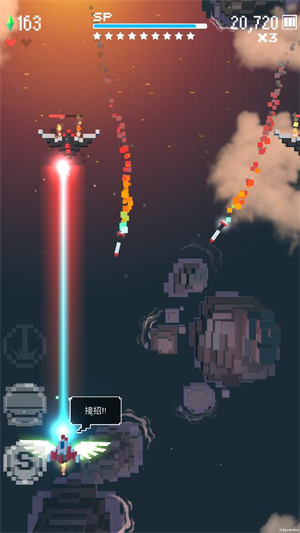 5、持续推进以歼灭敌人,闪避弹幕防止被击中坠毁,清空关卡内所有敌人或战胜boss即可完成通关。