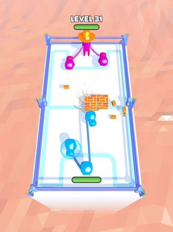 锐利的冲头(SharpPunch)游戏是一款超好玩的休闲闯关小游戏,这款游戏内设置了超多有创意的关卡,玩家们将会被分为互相对抗的两个阵营,游戏场中央有一个不断移动的墙壁,你可以用武器去攻击这个移动的墙,谁击中的次数多,谁就可以获得胜利。