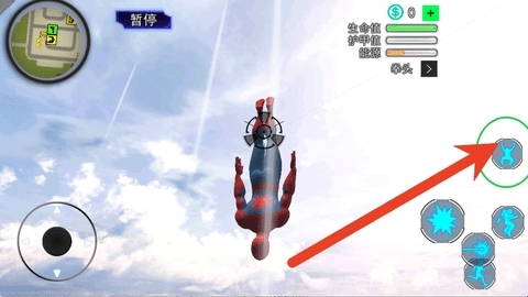 4、右侧那一堆按钮的设计十分有趣,玩家能通过它们进行攻击、飞天、坠落、吐丝等各种操作。