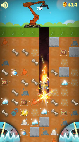这是一款卡通风格的休闲跑酷游戏,和传统跑酷玩法不同,它以物理机制为核心。在游戏里,玩家将扮演勤劳的挖矿工人,操控钻头不断向地下深处探索,挖掘各类矿石。你需要精准把控钻头的动力输出,巧妙避开沿途的各种障碍物,尽可能延长挖掘时长。海量关卡等待你去挑战,通过不断获取高分来刷新排行榜成绩。同时,别忘了寻找隐藏的神秘宝藏,用它们来升级钻头,让它能探索更深的地底世界。