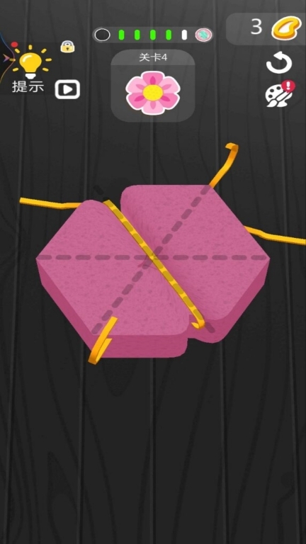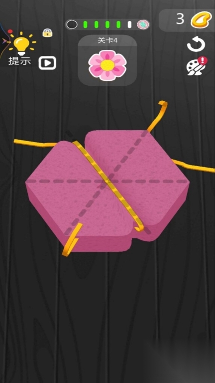 1. 玩家借助拖拽绳子来缠绕海绵,调整捆绑的松紧程度与角度,一步步捏造出目标形状。