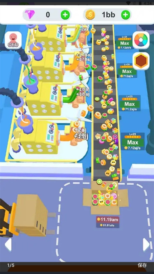 1、生产糖果销售并获得金钱。升级机器生产速度更快,购买先进的糖果设备来生产不同的糖果。