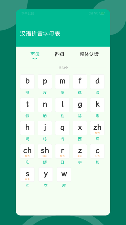 3、每个拼音都配备了发音示范与趣味互动练习,借助情景化的教学方式,让拼音学习过程更具趣味性。