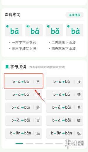 2、选定内容后会即刻跳转到专属学习页面,听取标准拼音的发音示范。