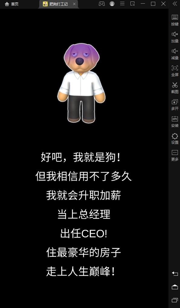 肥狗打工记是一款打工模拟类游戏,在游戏中你可以体验一段不一样的人生故事,选择自己的工作,规划自己每天的生活,还有各种事件发生,你可以做出不同的选择,去改变自己的人生,作为打工人也要有积极向上的态度,去学习更多技术,还有很多好工作等你来体验,快速积累财富实现自己的梦想。